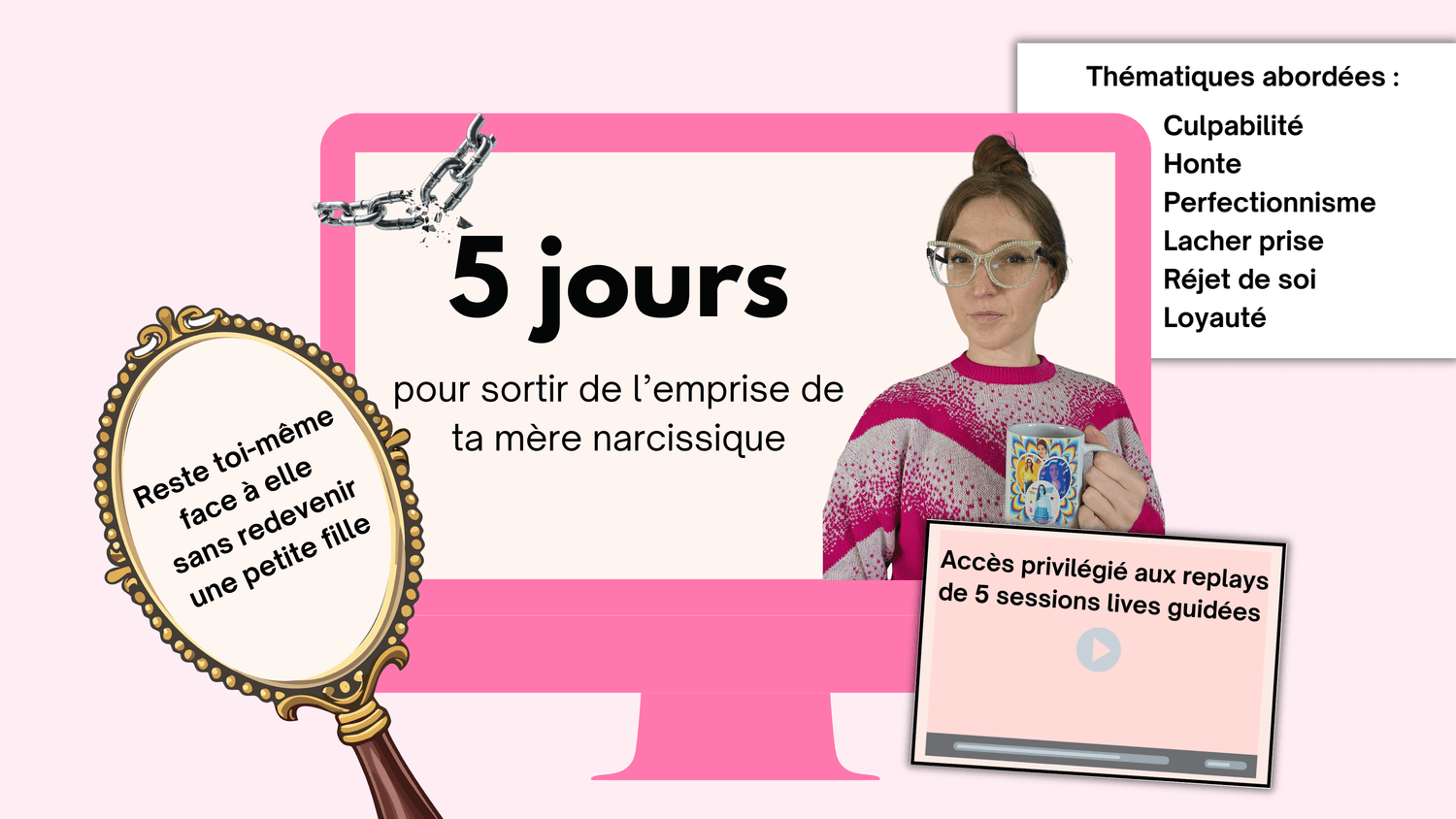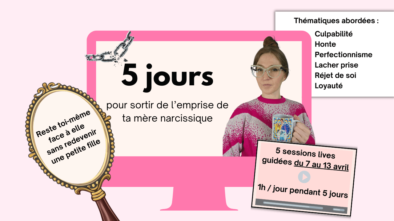 À l’intérieur de 5 jours pour sortir de l’emprise de ta mère narcissique, je vais te montrer exactement comment.