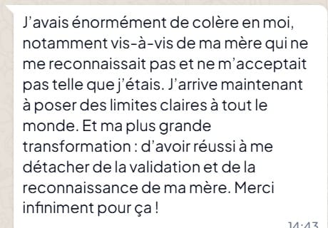 C’est pour ça que je comprends aussi précisément ce que tu vis face à ta mère et que je sais comment t’aider à ne plus être sous son emprise.