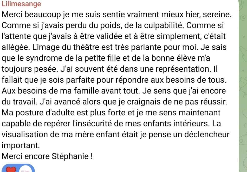Si tu es prête à regarder honnêtement ce qui se joue en toi et à appliquer ce que tu apprends, ce travail fonctionne.