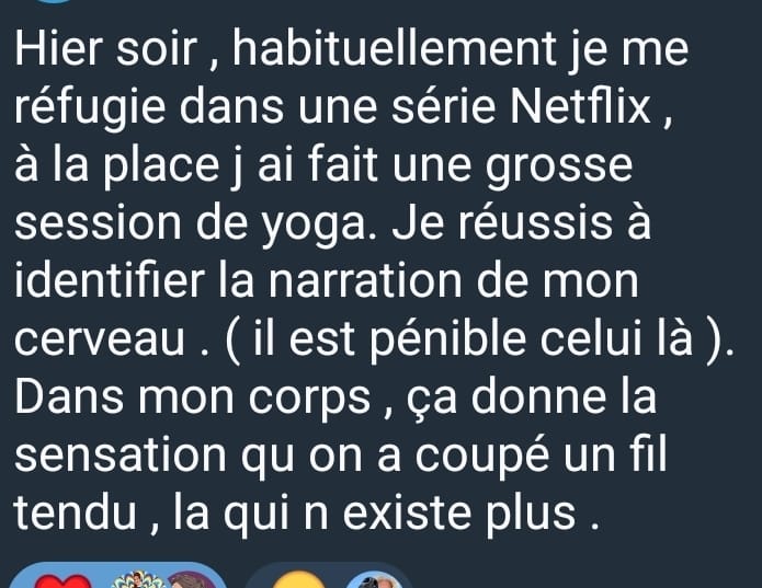 Tu repars avec des réactions qui ne te dépassent plus systématiquement,